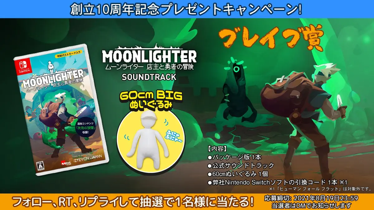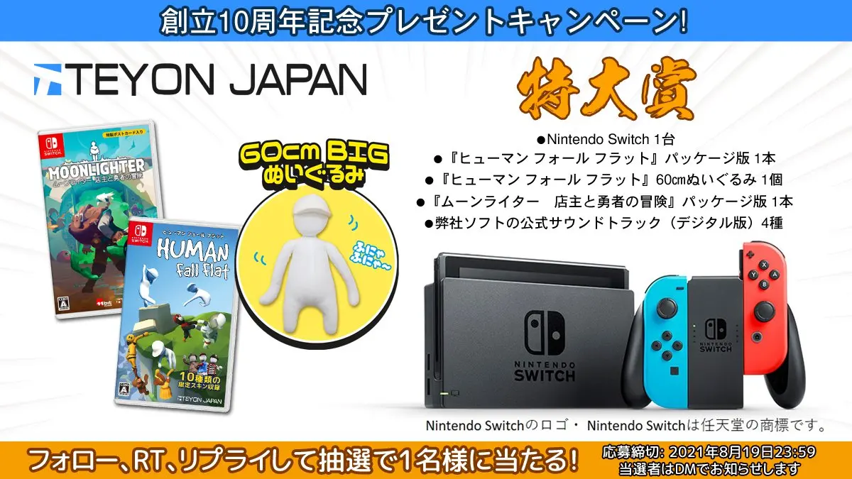 ●当社のTwitterアカウント「@TeyonJapan」 をフォローの上、応募期間中に該当のツイートをリツイート&リプライにてご希望の賞品そして思い出に残る当社タイトルやコメント(※)をいただいた方を対象とさせて頂きます。