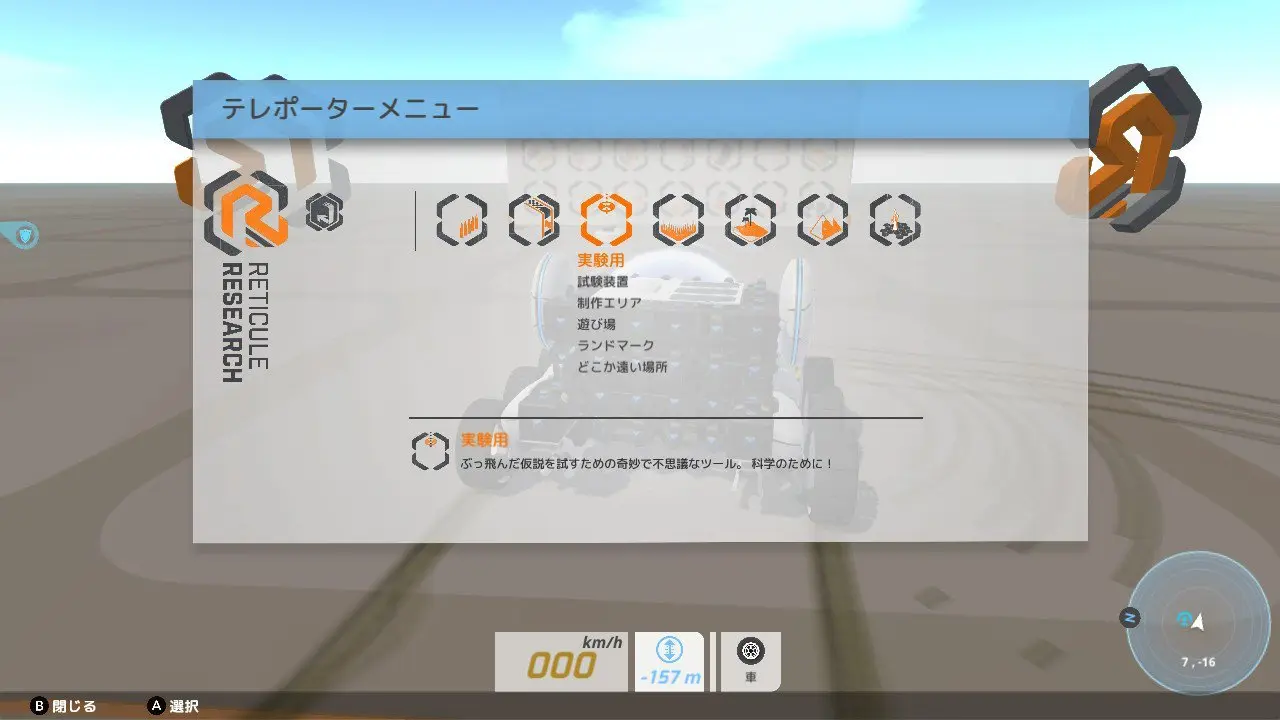 普段はキャンペーンモードのミッションでしか遊ぶことができない タイムアタックコースにアクセス したり、資材を組合わせてどんな部品をクラフトすることができるか研究できるエリアにも自由にア クセスすることができます。