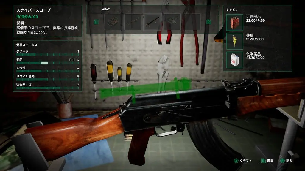 生き延びるためには計画が必要だ。拠点となる基地を建設すれば、様々な作業台をフル活用して道具、罠、武器をクラフトできる。既存の装備を調整してニーズに合わせていくこともできる。必要な素材を集めて基地内で武器やアイテムを改造できるマシンや仲間のためのベッドやイス、テーブルなどの家具を作ったり、基地をカスタマイズすることも可能だ。