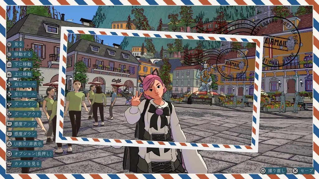 プレイ中に気に入った場面を自由に撮影することができる「フォトモード」が搭載されています。撮影した写真にフレームを追加してポストカード調にしたり、フィルターをかけて編集することも可能です。