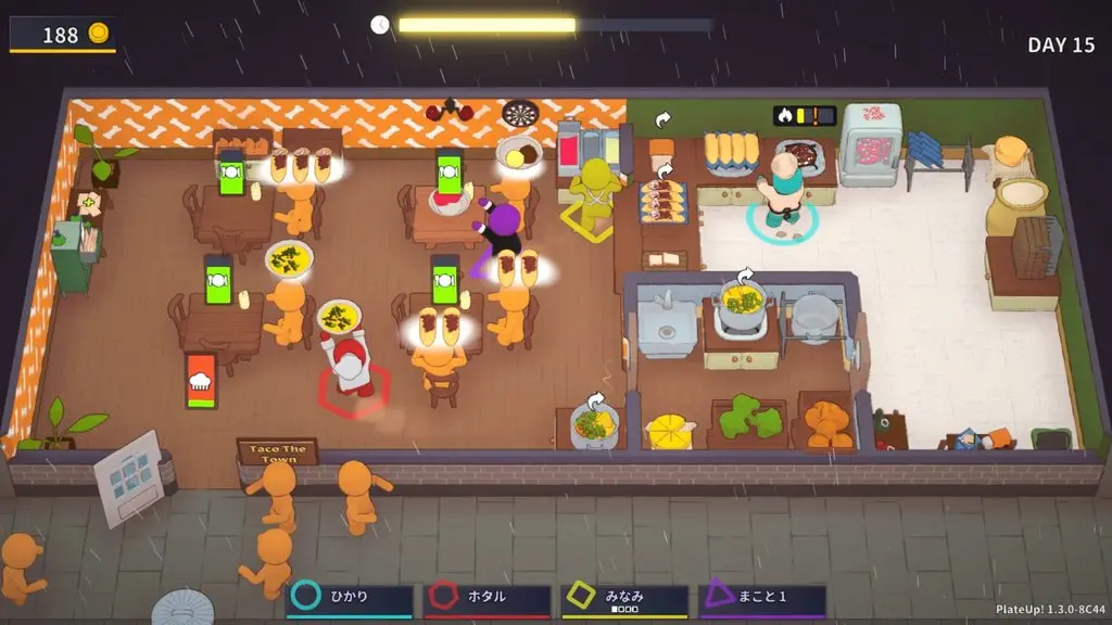 営業日数を重ねるごとに注文メニューや客数も増え、床が汚れていると移動速度が低下したり、汚れたお皿を片付けないとお客さんは席につけず、いつの間にか店の前に行列ができてしまうことも。効率よくテキパキと作業をこなして15日間の営業を成功させよう!