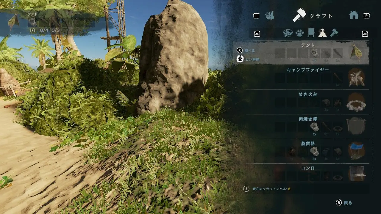 陸と海の天然資源を頼りに、サバイバルスキルを磨きながら空腹やのどの渇きをしのぐ。