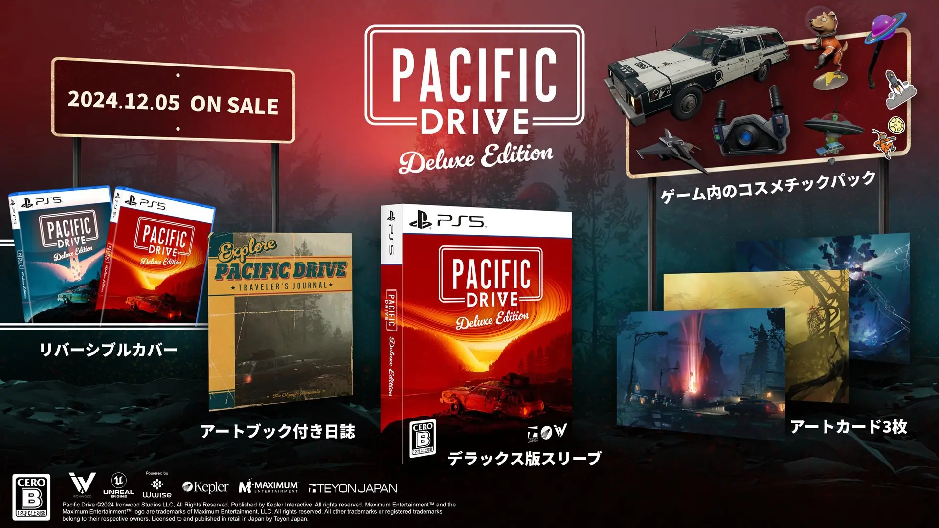 ※ Pacific Drive ©2024 Ironwood Studios LLC, All Rights Reserved. Published by Kepler Interactive. All rights reserved. Maximum Entertainment™ and the Maximum Entertainment™ logo are trademarks of Maximum Entertainment, LLC. All rights reserved. All other trademarks or registered trademarks belong to their respective owners. Licensed to and published in retail in Japan by Teyon Japan.